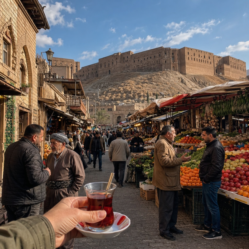 Me encontré en un mercadillo en el centro de Erbil, un lugar que se siente como un laberinto más que como un mercado. La primera impresión es abrumadora; el aroma de especias se mezcla con el de alimentos fritos. Hay una mezcla de risas y gritos de vendedores que ofrecen sus productos, intentando c…